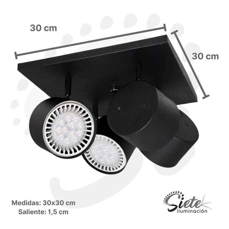Título: Lampara Plafón Cuadrado Techo Aplique 4 Luces Led Ar111