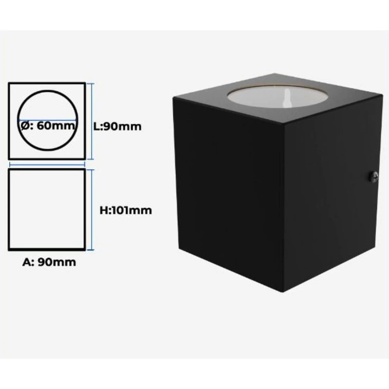 -Medidas: A: 90mm - L: 90mm - H: 101mm