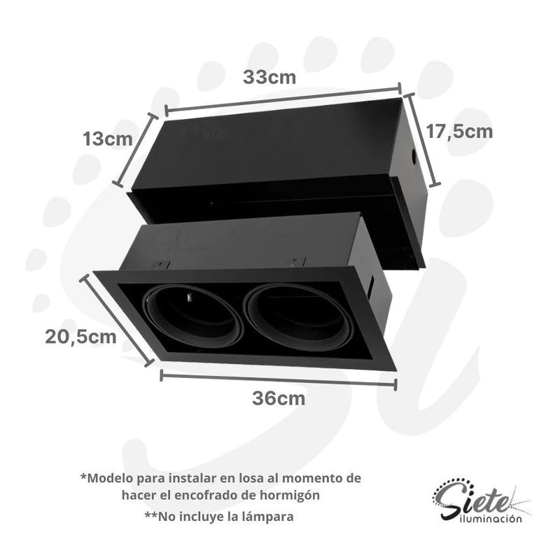 Título: Spot Embutir Techo Hormigón Losa 2 Luces AR111 Gu10 Pack x 4u